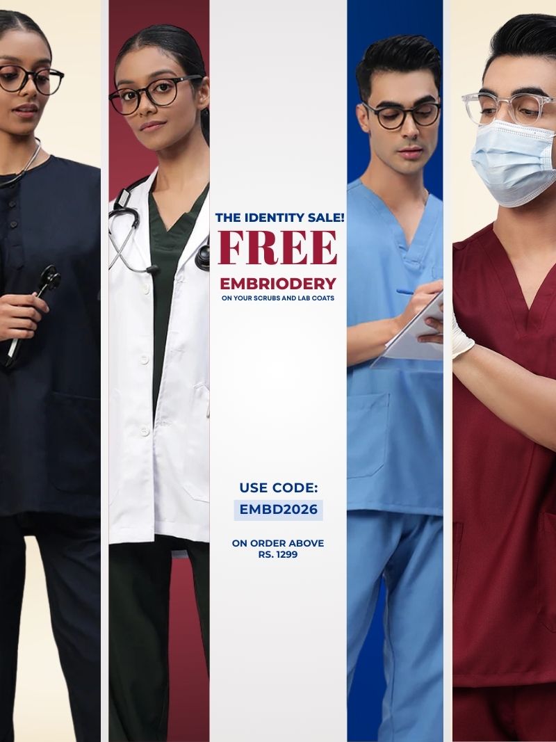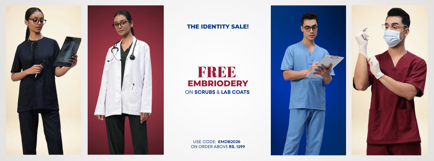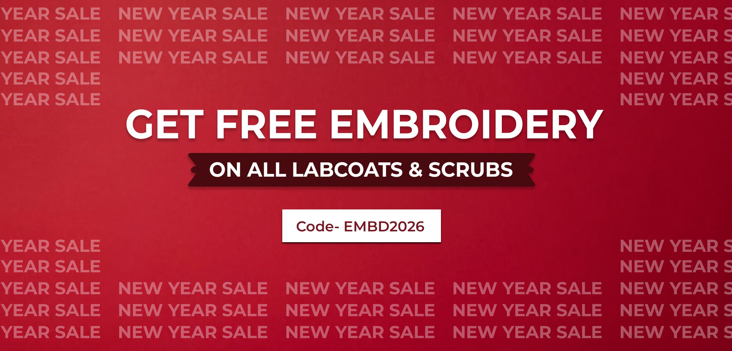 Get Free Embroidery on Scrubs and Labcoats. Use Code - EMBD2026