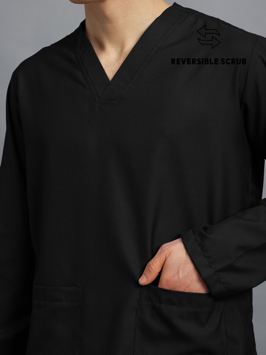 Black Reversible Full Sleeve Medical Scrubs - Male