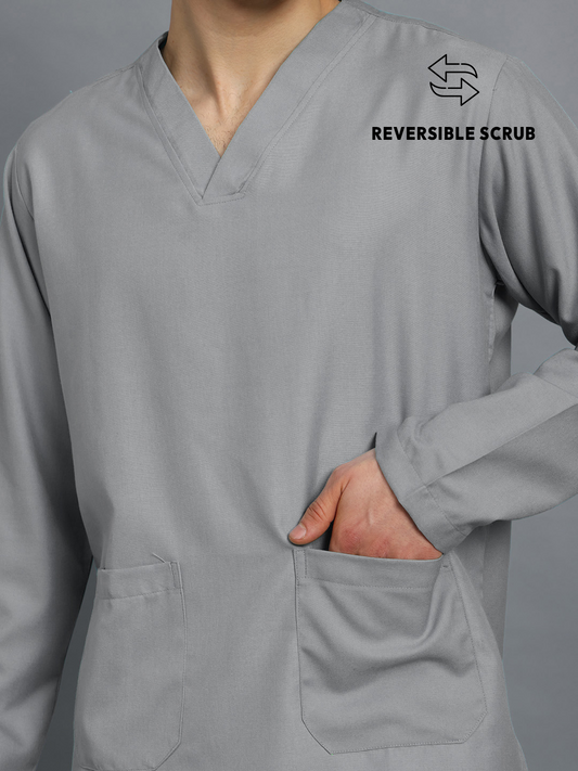 Light Grey Reversible Full Sleeve Medical Scrubs - Male