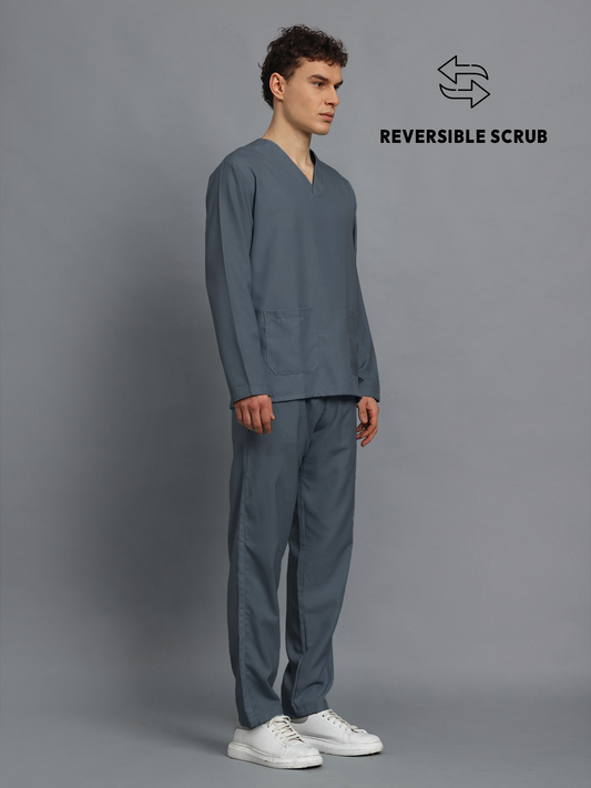 Dark Grey Reversible Full Sleeve Medical Scrubs - Male