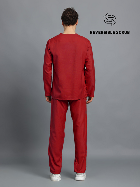 Red Reversible Full Sleeve Medical Scrubs - Male
