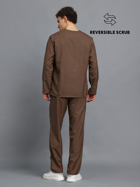 Brown Reversible Full Sleeve Medical Scrubs - Male