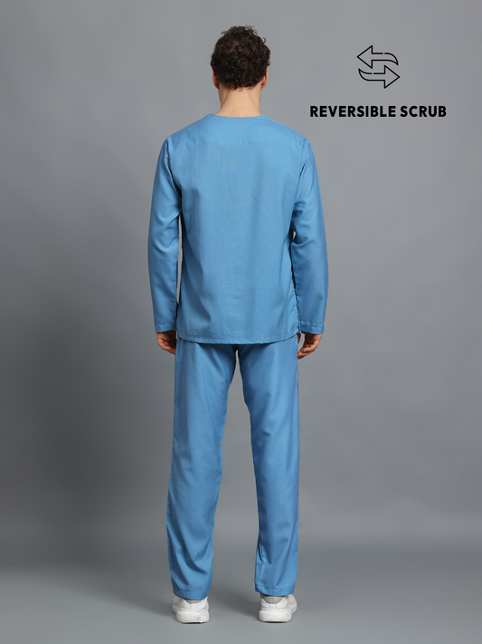 Sky Blue Reversible Full Sleeve Medical Scrubs - Male
