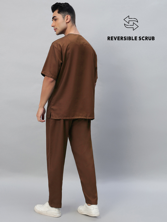 Brown Reversible Half Sleeve Medical Scrubs - Male