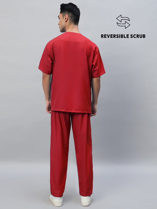 Red Reversible Half Sleeve Medical Scrubs - Male