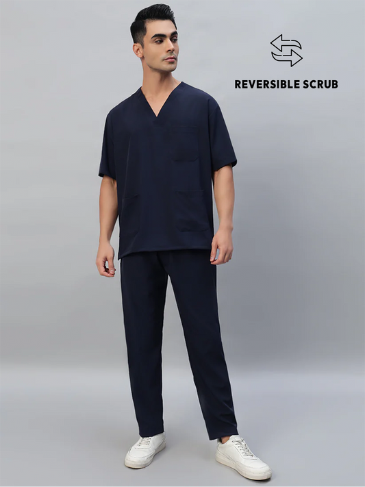 Blue Black Reversible Half Sleeve Medical Scrubs - Male