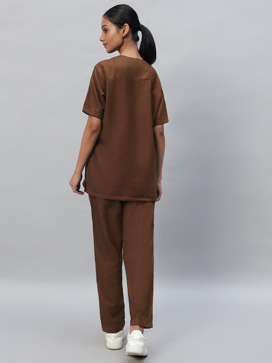 Brown All-Day Half Sleeve Medical Scrubs - Female