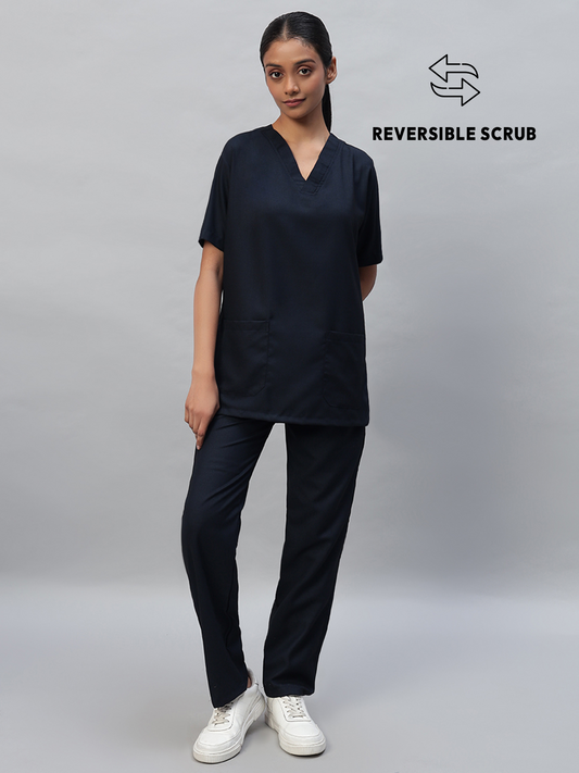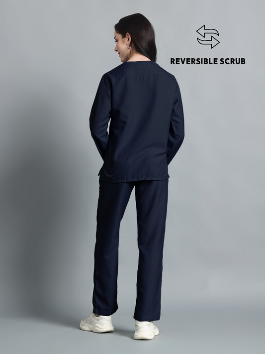 Blue Black Reversible Full Sleeve Medical Scrubs - Female