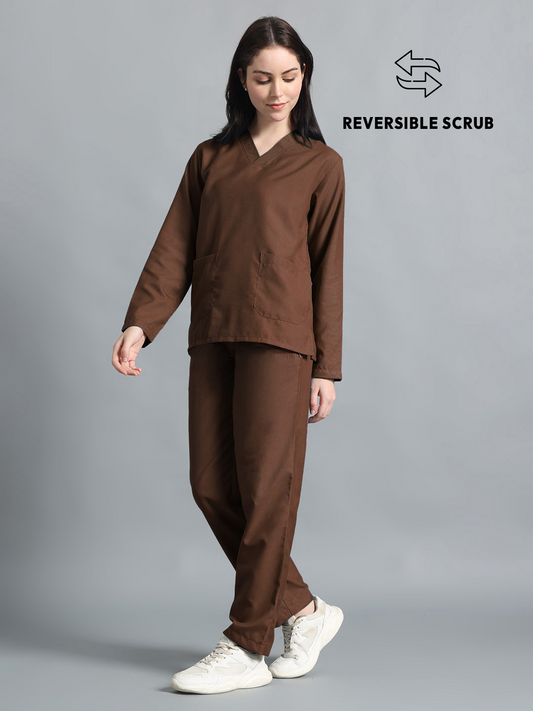 Brown Reversible Full Sleeve Medical Scrubs - Female