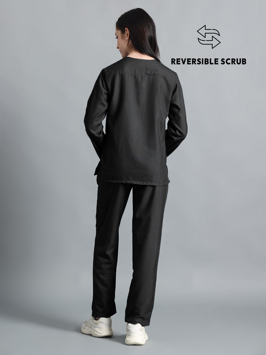 Black Reversible Full Sleeve Medical Scrubs - Female