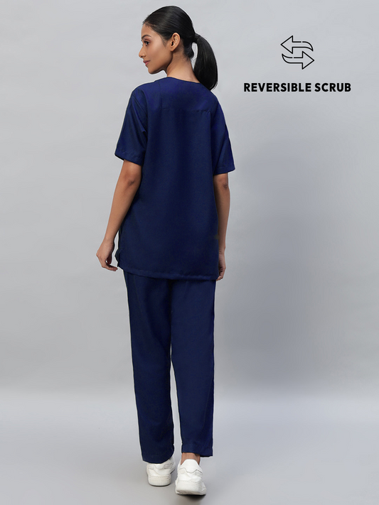 Navy Blue Reversible Half Sleeve Medical Scrubs - Female