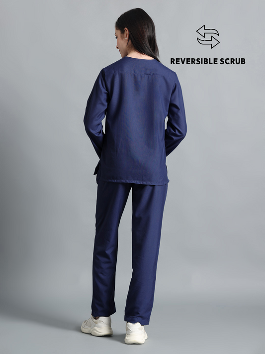 Navy Blue Reversible Full Sleeve Medical Scrubs - Female