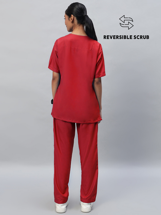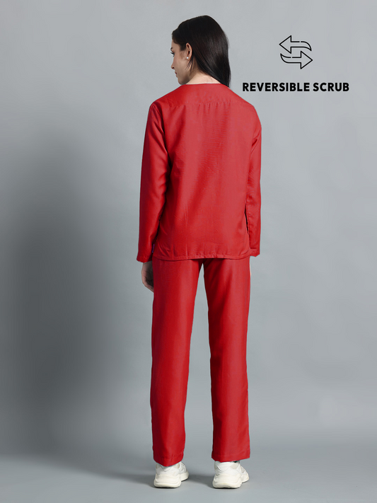 Red Reversible Full Sleeve Medical Scrubs - Female