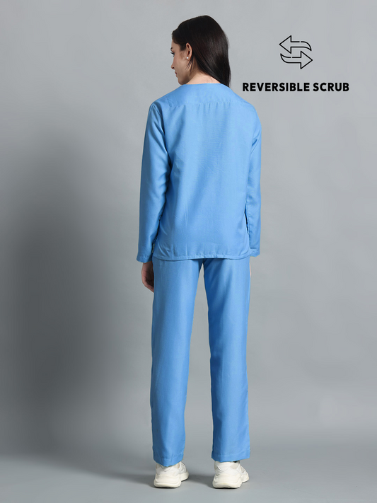 Sky Blue Reversible Full Sleeve Medical Scrubs - Female