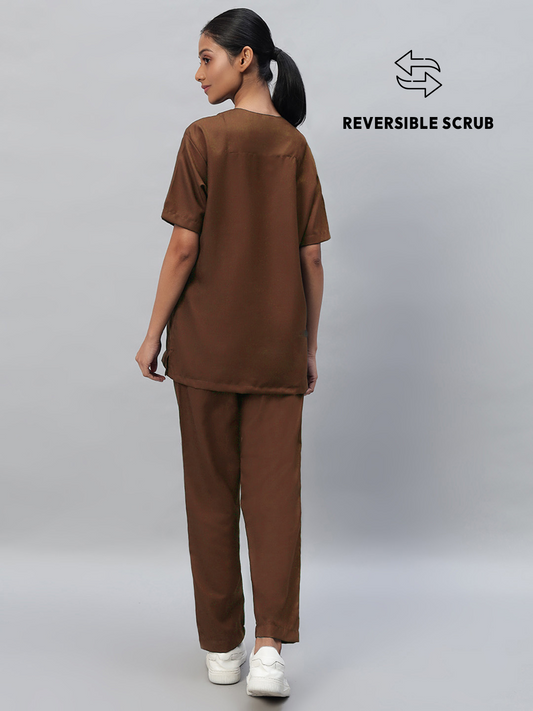 Brown Reversible Half Sleeve Medical Scrubs - Female